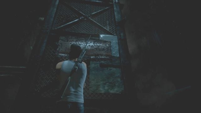 Beside the fact that you may hit the beast from your gun you are going a crazy chase after it. Climb up the elevator shaft (QTE) and use the faster path. Get to the second bar. From the top you are going to see a man. Your weapon will fire either you want it or not.
