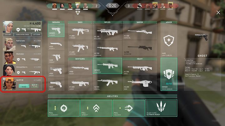 Players in Valorant can purchase equipment directly for another team member - there is no need to buy weapons and throw them to the ground, as in the case of Counter Strike Global Offensive. Those who want to support the team can choose the appropriate option in the store and ask others to purchase the necessary weapons.