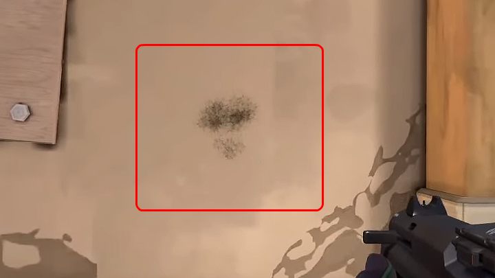The image above shows an example of the Spectre's spread, one of the weapons in Valorant. The test was conducted from a medium distance - the closer the target, the smaller the bullet spread. The first 3 rounds hit roughly at the point, and then the weapon began to pull slightly to the left and up. After the next 5 rounds, the weapon's vertical spread is stabilized and the weapon moves only from right to left.