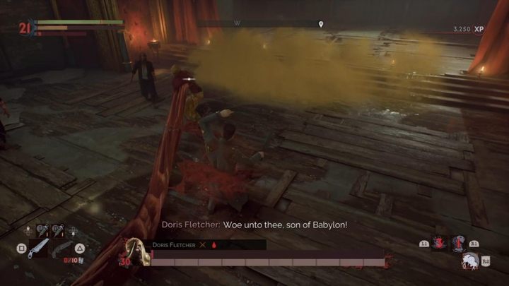 - Pass the next few balconies and head to the ground floor, to the woman who speaks on the stage. Soon you will reach Doris Fletcher - a short cut-scene with the woman awaits you. After that you will have to face her.