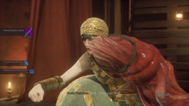 - Upon her death, Doris will leave a very good saber that was used by her during this fight. It is a powerful one-handed weapon that is worth using.