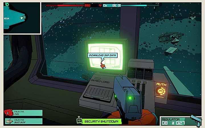 In the security room can sabotage the turrets and bots. You should always look around for security rooms (SEC). You can temporarily disable the local security systems (security position shown in the image) or pay with credits for a permanent sabotage. This second option is a good idea if you have to explore a large ship with several rooms in which there may be turrets and other protective systems.