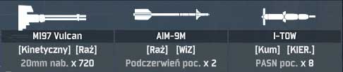 Anti-Radar - anti-radar missiles used for destroying anti-aircraft vehicles using radars. They are guided automatically against SEAD targets.