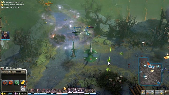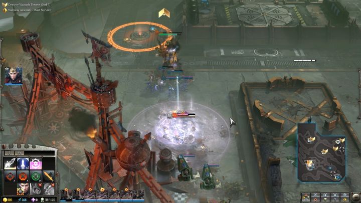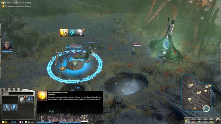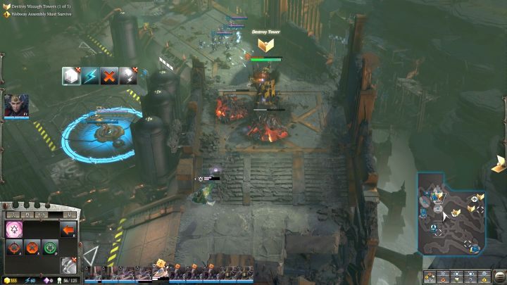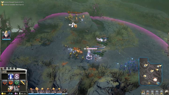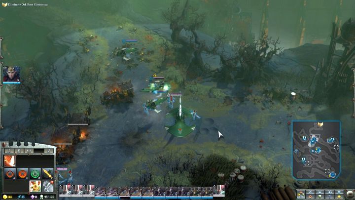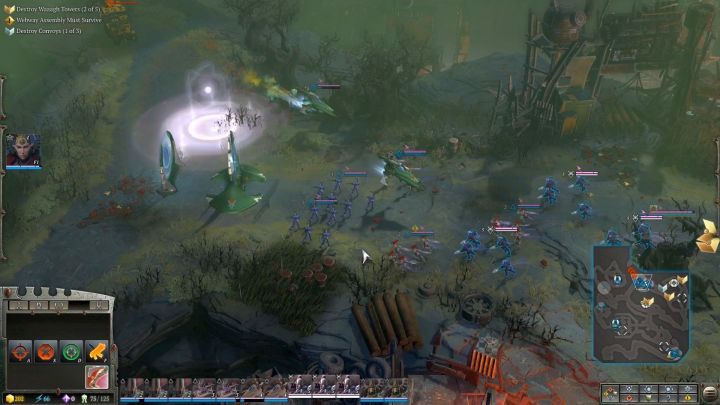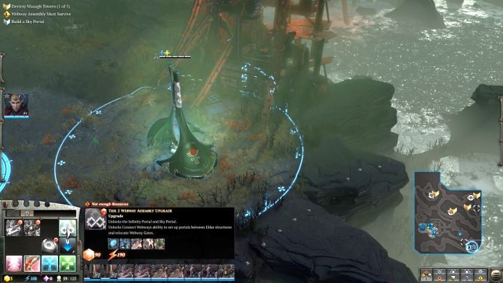 You will reach the place where the first Waaagh! Tower is located. You will come across quite a large group of Orks in the area, but they are not a force you would have a problem defeating. Before the skirmish begins, teleport the newly erected Warrior Portal to the vicinity of the battlefield, but not in range of enemy attacks. Use it to replace lost units in your squads. Now attack the hostile camp, annihilate the Orks and destroy the Tower. If the enemy activates its special ability (it will start glowing and you will hear quite distinctive music, then focus the attack of all of your units on the building, as it will receive much more damage). When you destroy the first Waaagh! Tower, you will activate a side quest that requires the construction of a Sky Portal - when you have an abundance of resources, it is definitely worth doing.