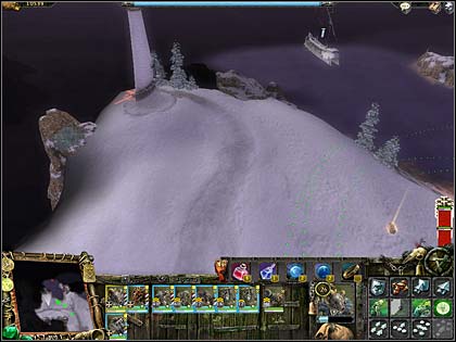 This time we will make a lot of destruction - we cave to crumble three lighthouses and kill every single Elven soldier we can find. Deploy as usual and move north, you will see first target defended by a hostile group there. Short fight and one third of mission is completed. Now move west until you reach another hill with second lighthouse and some more Elves to kill. Short advice: ships can unload enemy's troops behind you, so be careful and don't let them destroy your cannon.