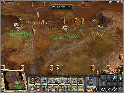 For some time there will be enemy's forces attacking us only from the right direction. All the shooters you have should be enough to make foes change their mind. In some moment there will be a lot of Chaos' servants marching on us from both directions - don't worry, if you concentrate your fire, use spells and finish them off with melee troops, there will be no problems defeating them. But remember: artillery should only target hostile ranged units.