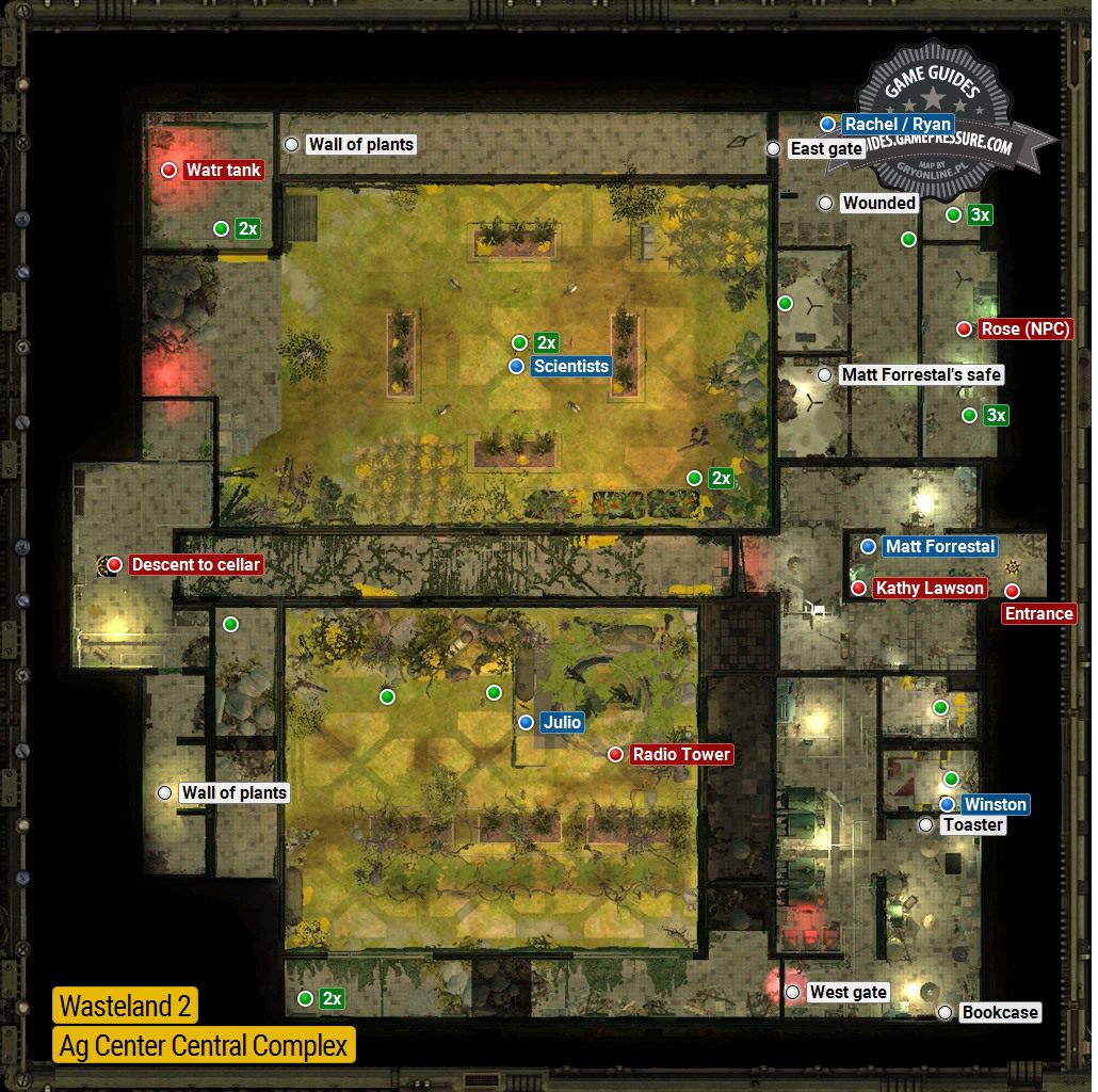 Right after you enter, you encounter doctor Lawson, who explains the situation. The access to the relay (this is where you need to mount the Repeater Unit) is currently being blocked off by the mutated plants so, you will have to activate the irrigation system, before you use it. Apart from that, the infection is ravaging the complex, spread by the exploding Pods. If any party member is infected and you do not want them to die, you need to help develop the antidote. Otherwise, you can limit your actions to mounting the Repeater Unit and leave the Ag center up to its fate. If you want to help, you need to bring 10 specimens of the burst Pods. Remember not to approach them and destroy them with one shot, from a safe distance. You will find lots of Pods all around this location so, be careful while heading ahead. It is best to highlight the area at all times (by default, with the Z key). After you have collected all of the fragments, you still need Fungicide from the basement and the pumps to be activated. You will then receive the cure for the infection, which you will be able to use to treat the infected members of your party.