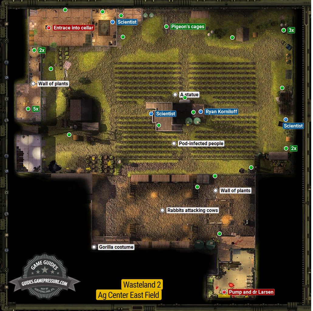 In the Eastern fields, there is an Ag center boss, of a type - doctor Larsen, so it is best to explore this location as the last one and be prepared, as well as possible.