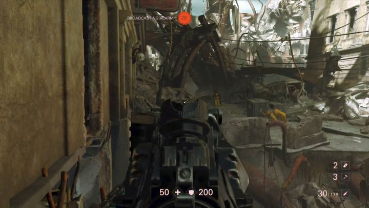 - The enemies are hidden on several floors of the destroyed building - if you can make it, it is a good idea to eliminate the Commanders stealthily, because enemies, after being alarmed, will be attacking from all sides. The Commander at the higher floor is accompanied by several soldiers - it is impossible to eliminate him stealthily, but you can simply kill him, before he activates the alarm.