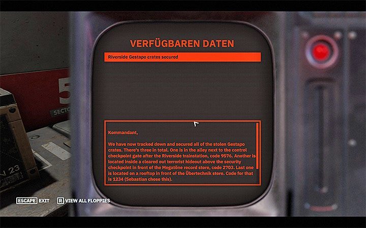 Decoded messages can be various, but they can contain, among other things, ready-made combinations. In the example from our picture, up to three different codes for red crates were stored on a floppy disk.