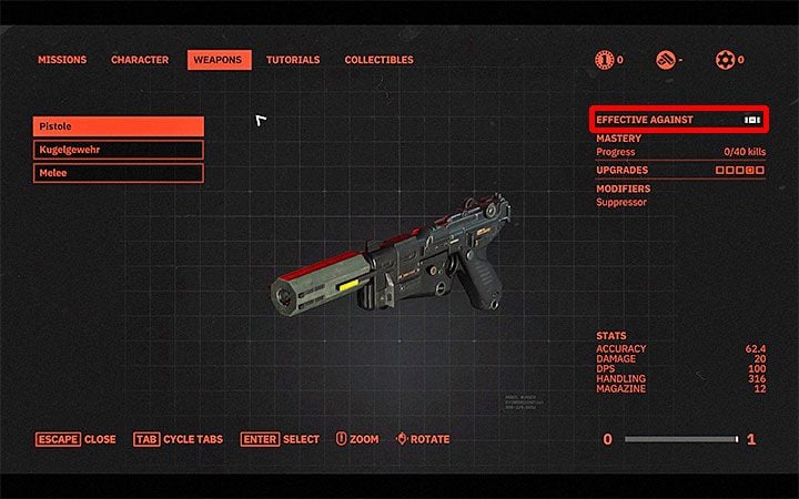 An alternative way to read information about the use of a weapon is to open bookmarks about it in the menu (Weapons). Information about the effectiveness of the destruction of certain protective displayed in the upper right corner of the screen - it was on the training map of the gun shown in the figure.