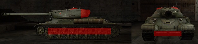 The last type of maneuvers popular among tankers is so-called "hugging": facehug or sidehug. Frontal contact of two tanks in most cases turns into shooting duel: this player who is able to better penetrate enemy turret - wins. One of the best vehicles for such clashes is American heavy tanks, Soviet IS series heavy tanks and German E-75. During these duels both sides try to penetrate weak points on enemy tanks, which can be avoided by rapid turnover of the hull and turret. Soviet tanks, thanks to their low profile, can be easily hit at the commander's cupola. On the other hand IS-3 or IS-8 can use their small size and after sudden withdrawal, fire at the front plate of the enemy.