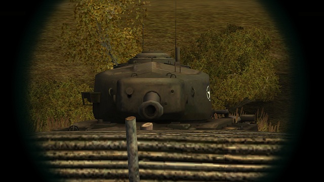 Another maneuver very popular among some (especially American) commanders is so called hull down position. We set the tank behind terrain obstacle or a wreckage in the way that only turret is visible. Because American tanks such T29 or T32 have quite vulnerable hulls and almost indestructible turret, it is natural to attempt using all advantages, while hiding flaws. A tank set in such position is one of the toughest enemies do eliminate, because as opposed to the vehicle hidden behind the building's corner, it is able to keep observing the field and carry out the shoot-out. One of methods to deal with such opponent, available only in close range, is to shoot at vulnerable turret points. Hitting commander's cupola or weaker armored points on the front can inflict enough damage to destroy the enemy or force him to retreat. At longer distance the fight with such opponent is more difficult, if not impossible. We can try to use HE shells, but due to small amount of damage inflicted and limited amount of shells we can have, usually the better idea is to find another way around and try to flank the enemy. As a last resort, if we outnumber opponents, we can try to ride over the battlefield and fight on the close range.