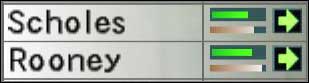 They're five of fields under the surname of the player. One of them is always marked. It means the shifting zone in the formation. The more red it is the further formation is moved. If we are playing it for the right goal the most red zone will mean: players are moved to offensive. It is being operated with: L1 + R1 (offensively) / R2 (defensively). It is possible to check it in the time of performing the throw-in. More about this option is in the further part.