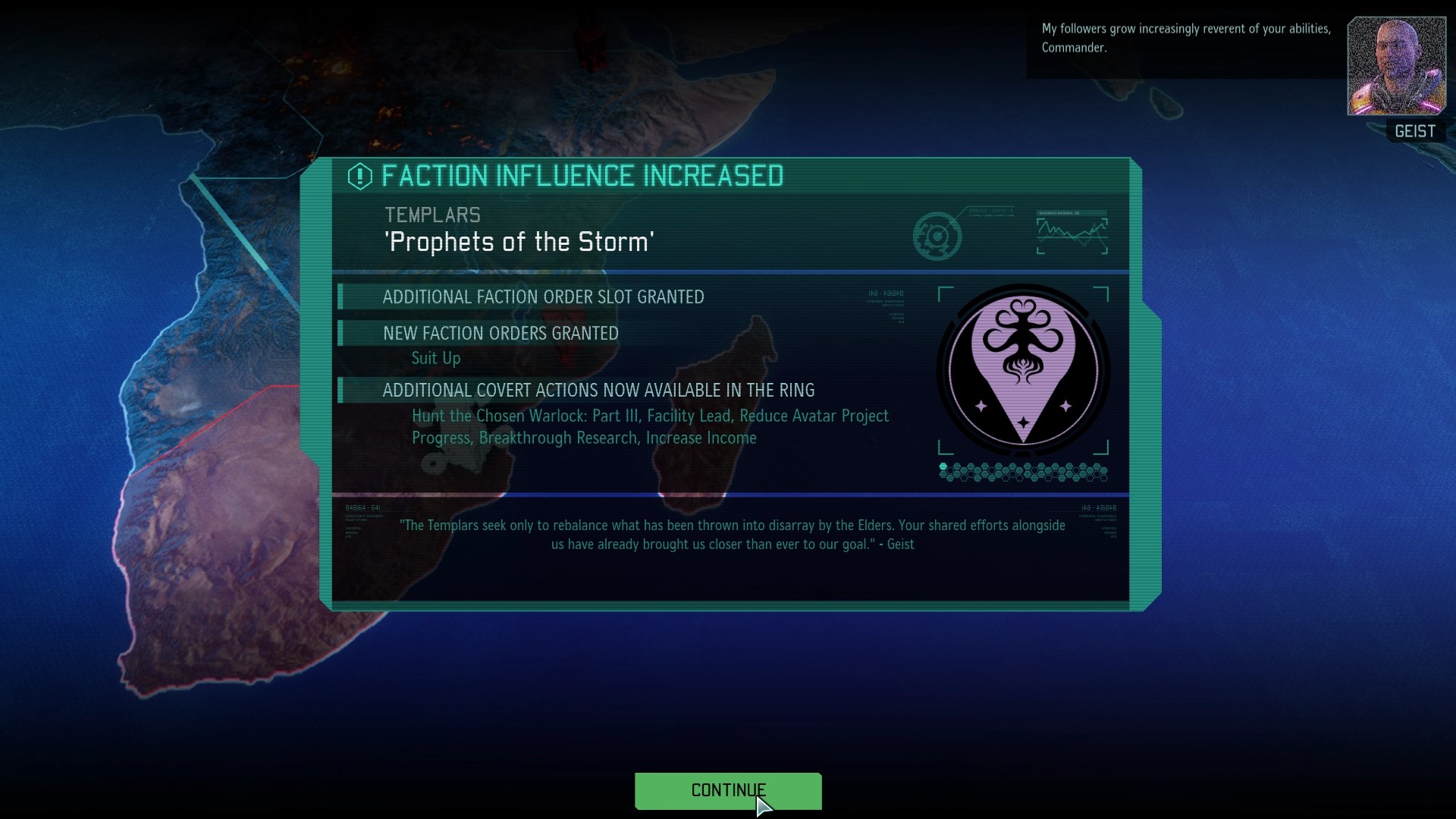 - The most profitable Orders that you should unlock are those that increase the experience points gained and doubling the AP gain (both related to the Templars), increasing the number of contacts with the resistance movement (the Reaper card) and the one that causes enemies to drop more items after death. (Renegade card). If you have trouble controlling the progress of the AWATAR project, you may want to consider using the Sabotage card (Renegades), which removes one segment of the progress bar of the project at the end of each month