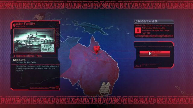 - Destroying alien facilities. Those appear on the map quite randomly (you will be informed when such a facility is found) and it will push the progress of the alien invasion each time that happens. Destroying facilities will decrease the progress bar by 2 segments.
